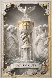 The awakening of the heart. The Ace of Cups signals a new beginning in love, profound spiritual insight, and overflowing emotion.
